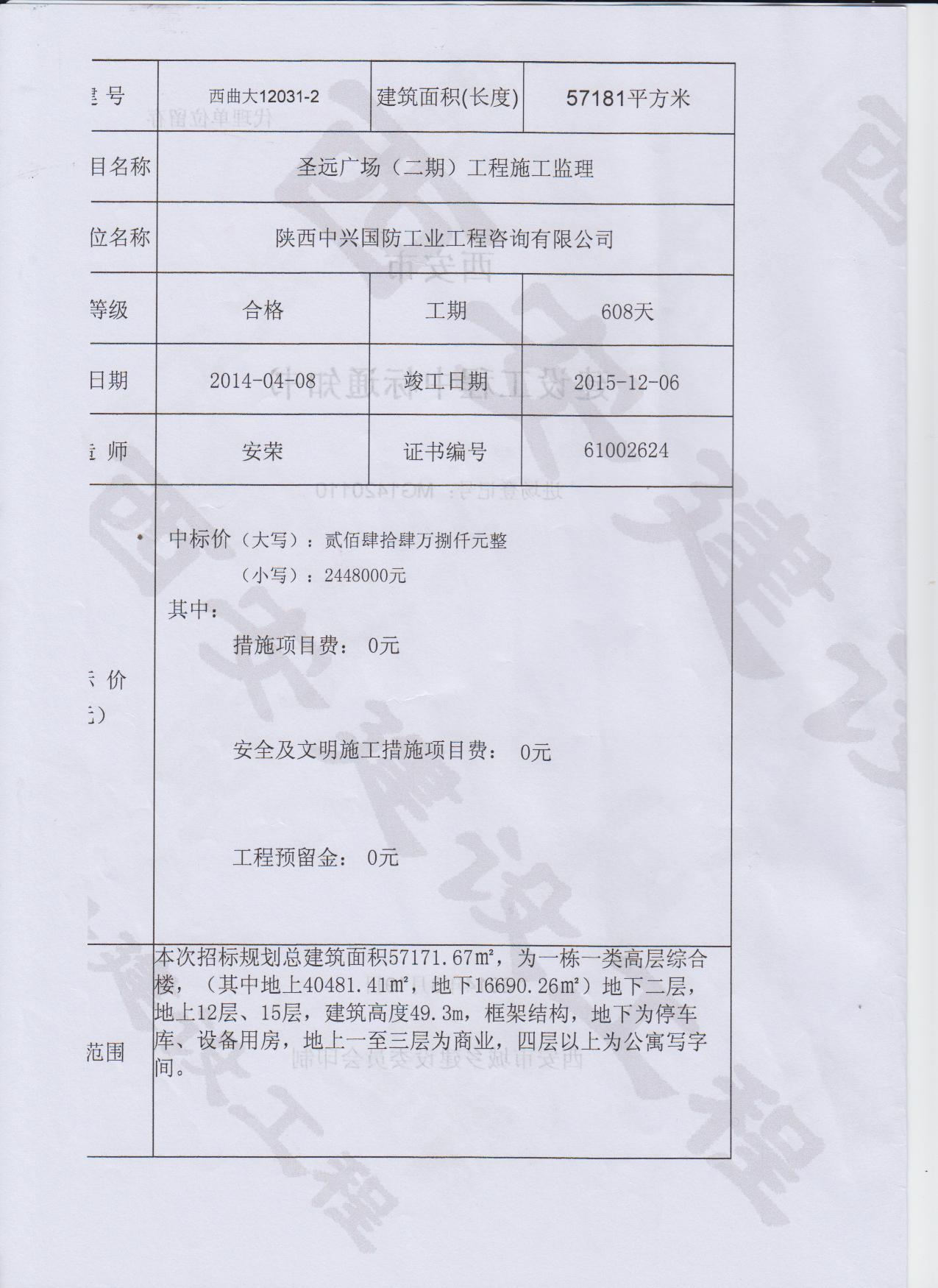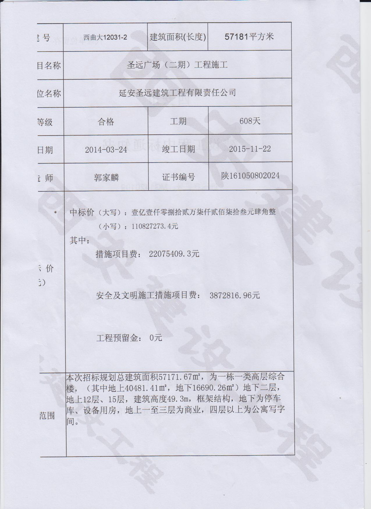 項(xiàng)目概況:圣遠(yuǎn)廣場(chǎng)(一期) 總建筑面積54703平方米。圣遠(yuǎn)廣場(chǎng)(二期) 總建筑面積57171.67㎡。投資金額3億元。