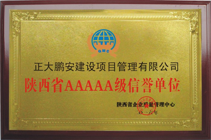 一、陜西省AAAAA級信譽單位獎牌