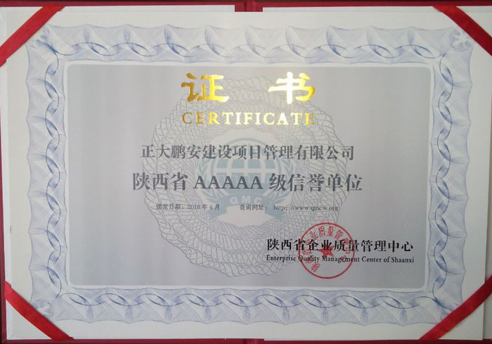 二、陜西省AAAAA級信譽單位證書