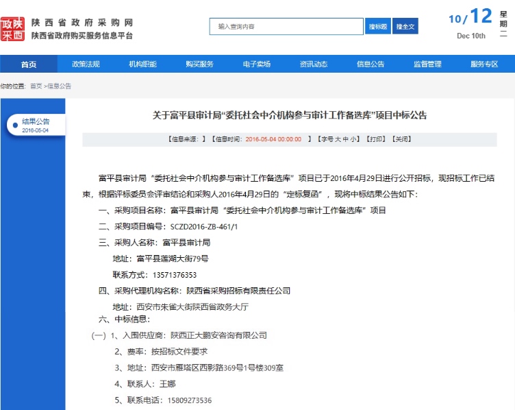 相關(guān)熱詞搜索:審計(jì)局 富平縣 中標(biāo)公告