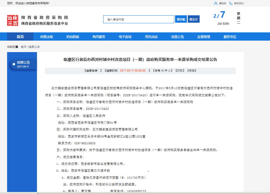 項(xiàng)目名稱:臨潼區(qū)行者街辦西河村城中村改造項(xiàng)目(一期)政府購買服務(wù)單一來源采購