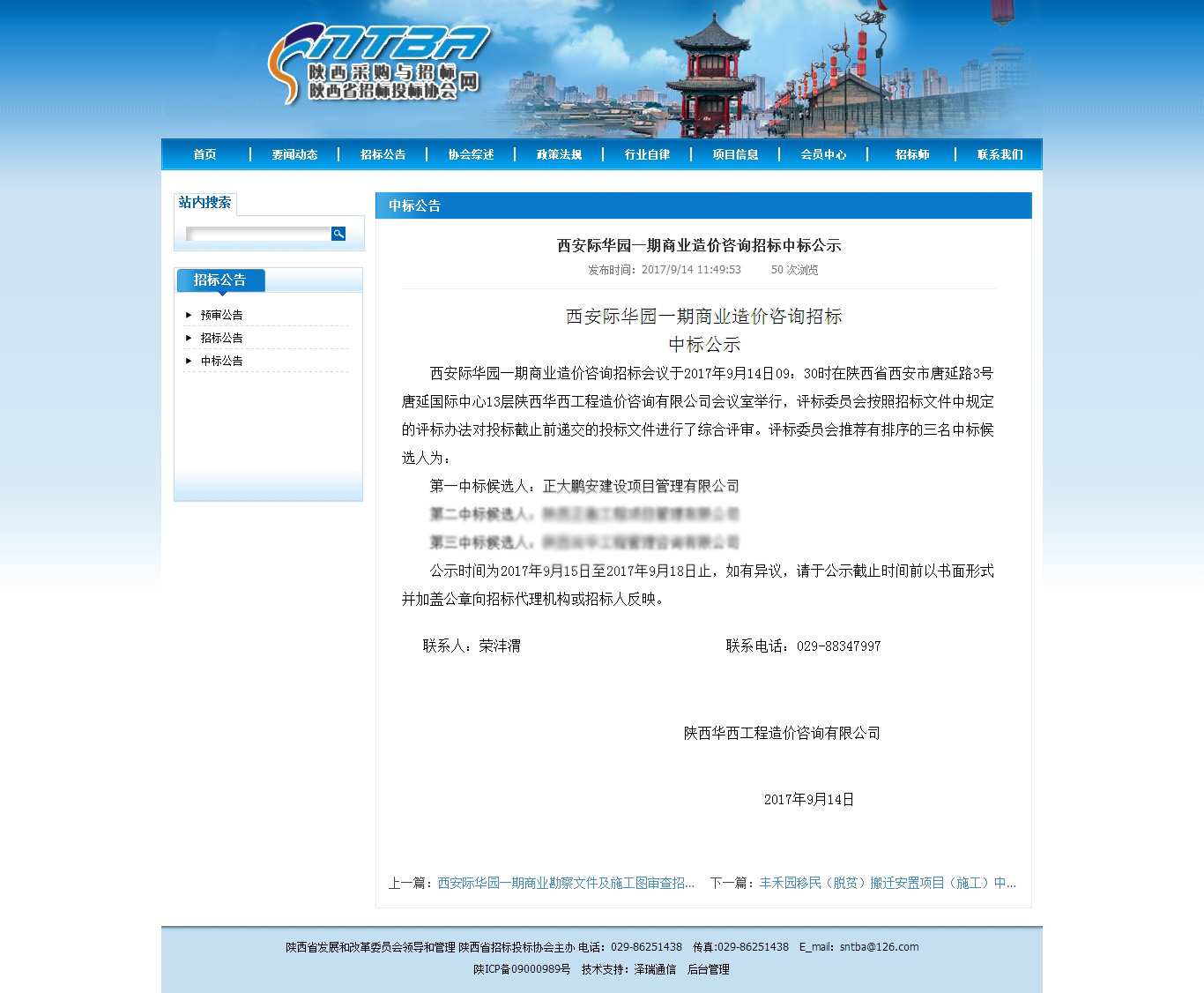 正大鵬安中標西安際華園一期商業(yè)造價咨詢招標項目