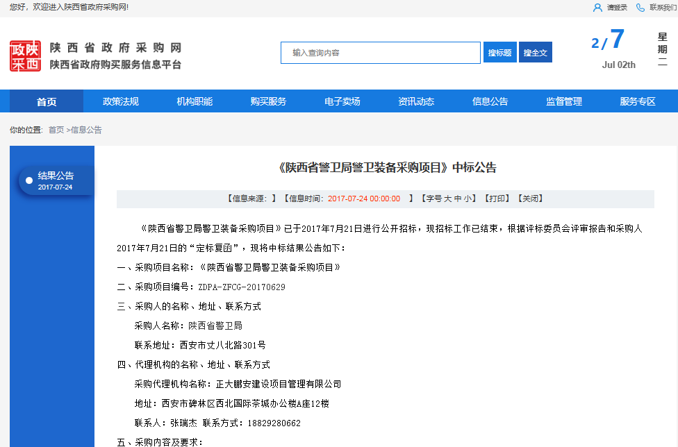項(xiàng)目名稱:陜西省警衛(wèi)局警衛(wèi)裝備采購(gòu)項(xiàng)目