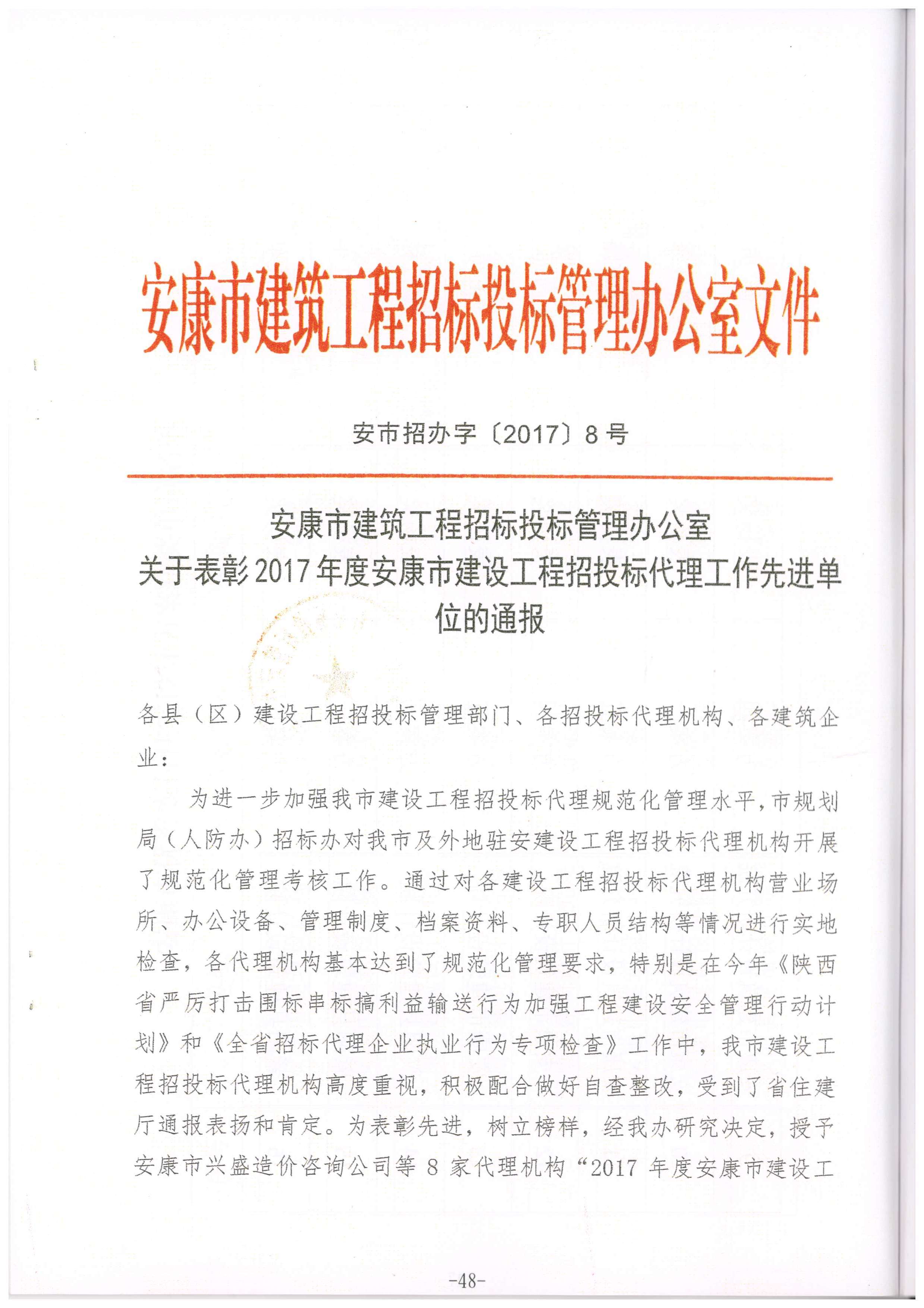 關(guān)于正大鵬安建設(shè)項目管理有限公司安康分公司受到安康市建筑工程招投標(biāo)管理辦公室的通報的表彰