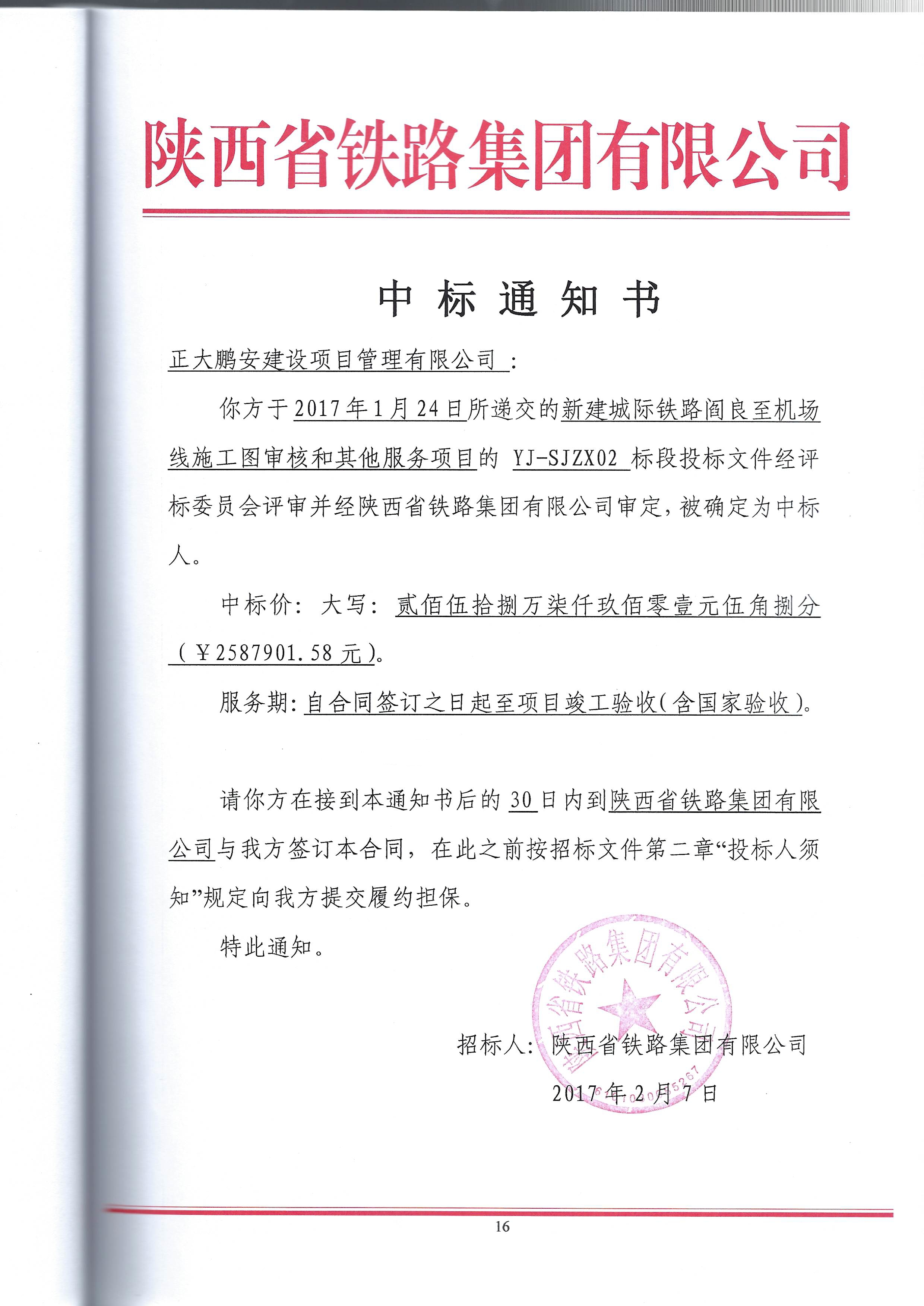 工程名稱:新建城際鐵路閻良至機場線施工圖審核和其他服務(wù)項目YJ-SJZX02標(biāo)段造價咨詢服務(wù)