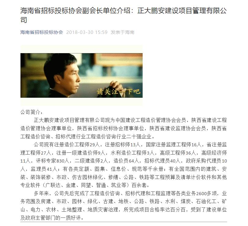 海南省招標投標協(xié)會對正大鵬安建設(shè)項目管理有限公司進行專題報道