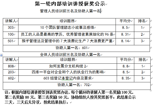 上一篇:內(nèi)部培訓講授及組織情況排名表 下一篇:關(guān)于2018年勞動節(jié)放假安排的通知