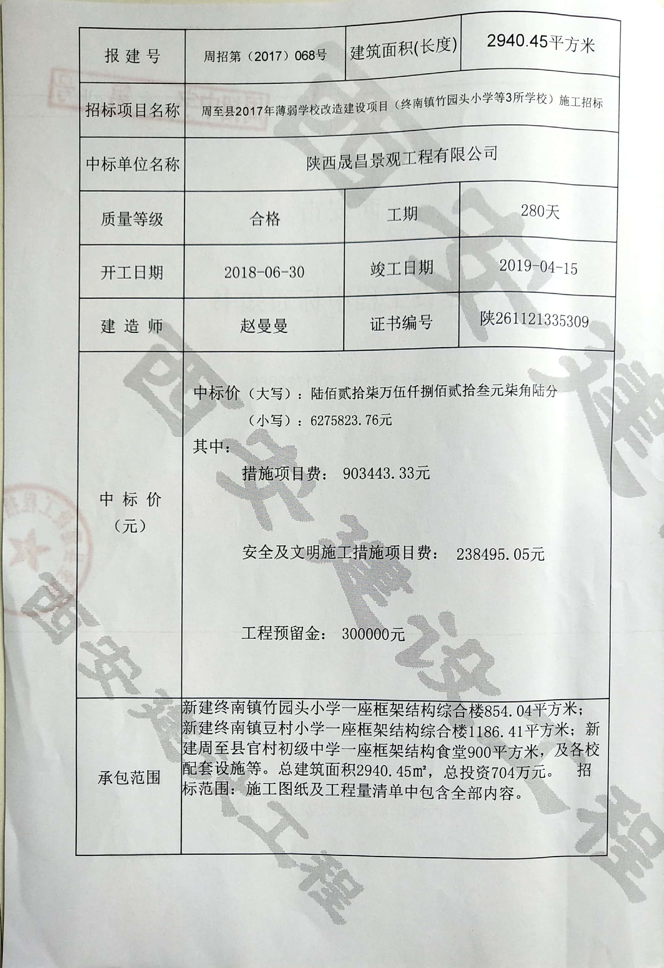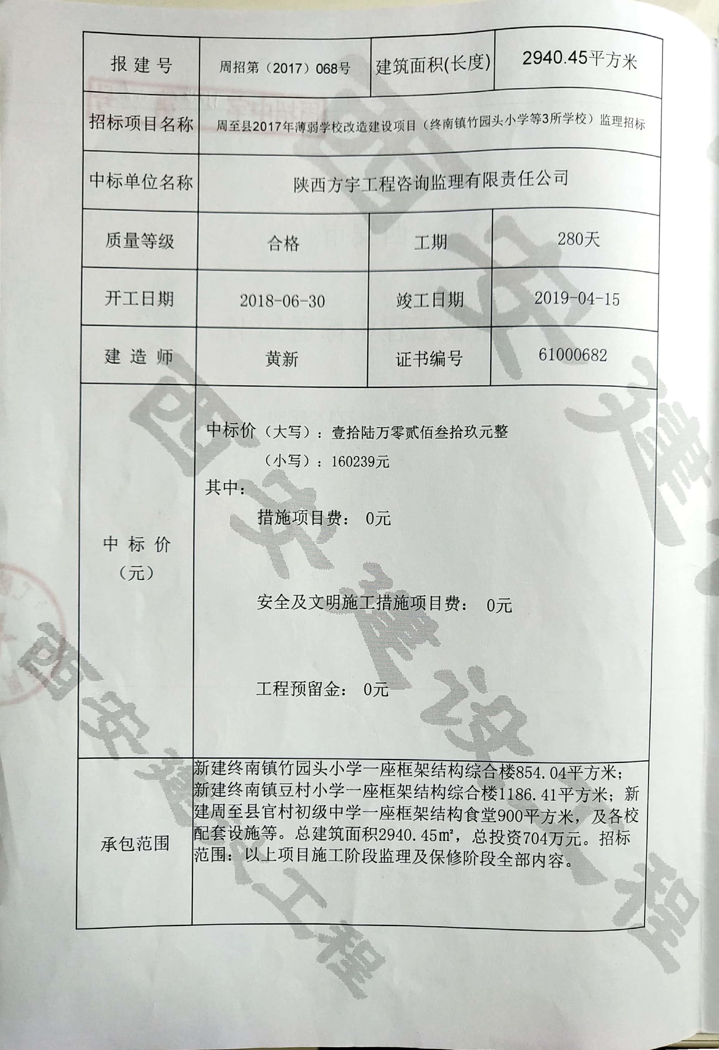 周至縣2017年薄弱學(xué)校改造建設(shè)項(xiàng)目(終南鎮(zhèn)竹園頭小學(xué)等3所學(xué)校)施工及監(jiān)理招標(biāo)