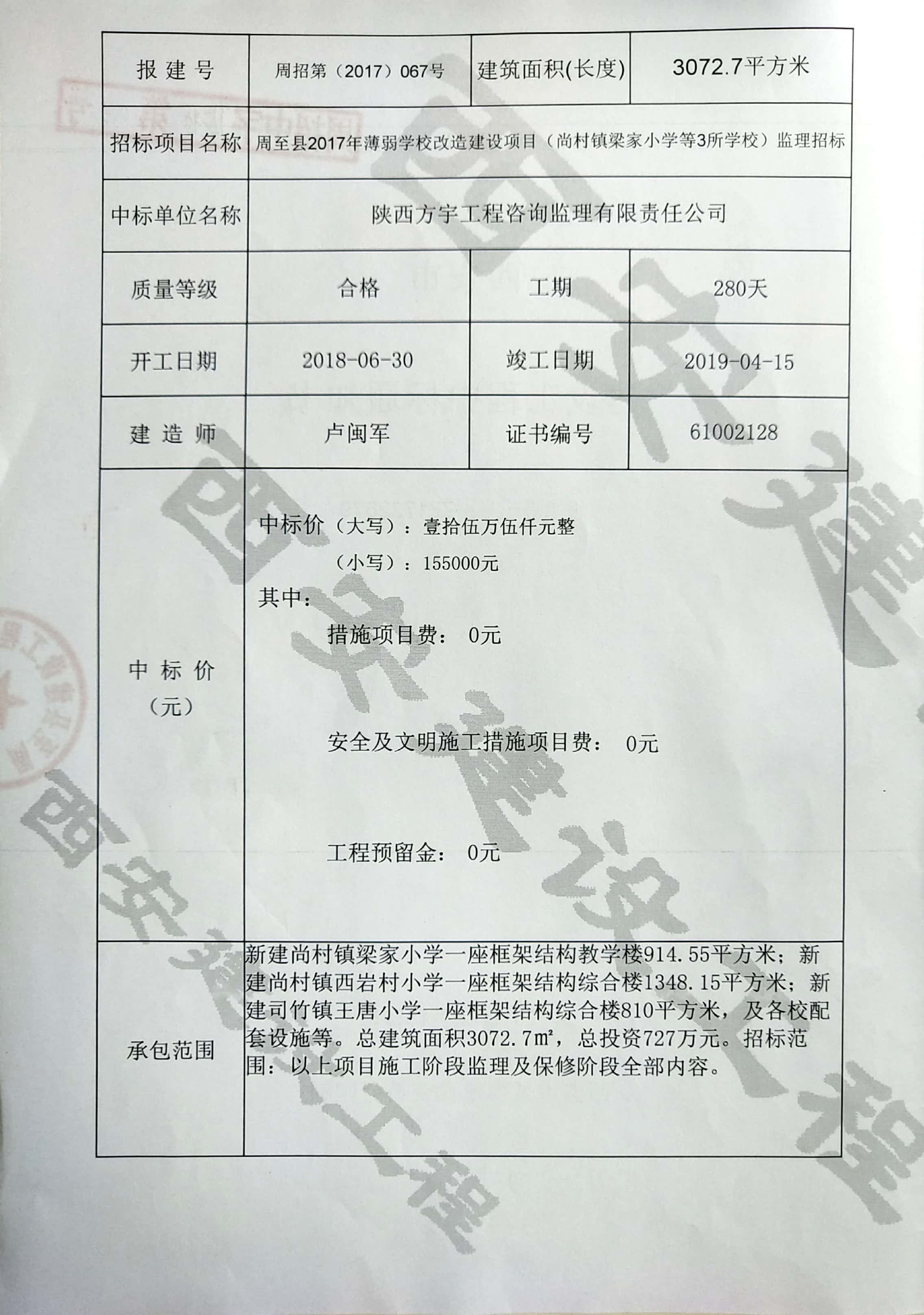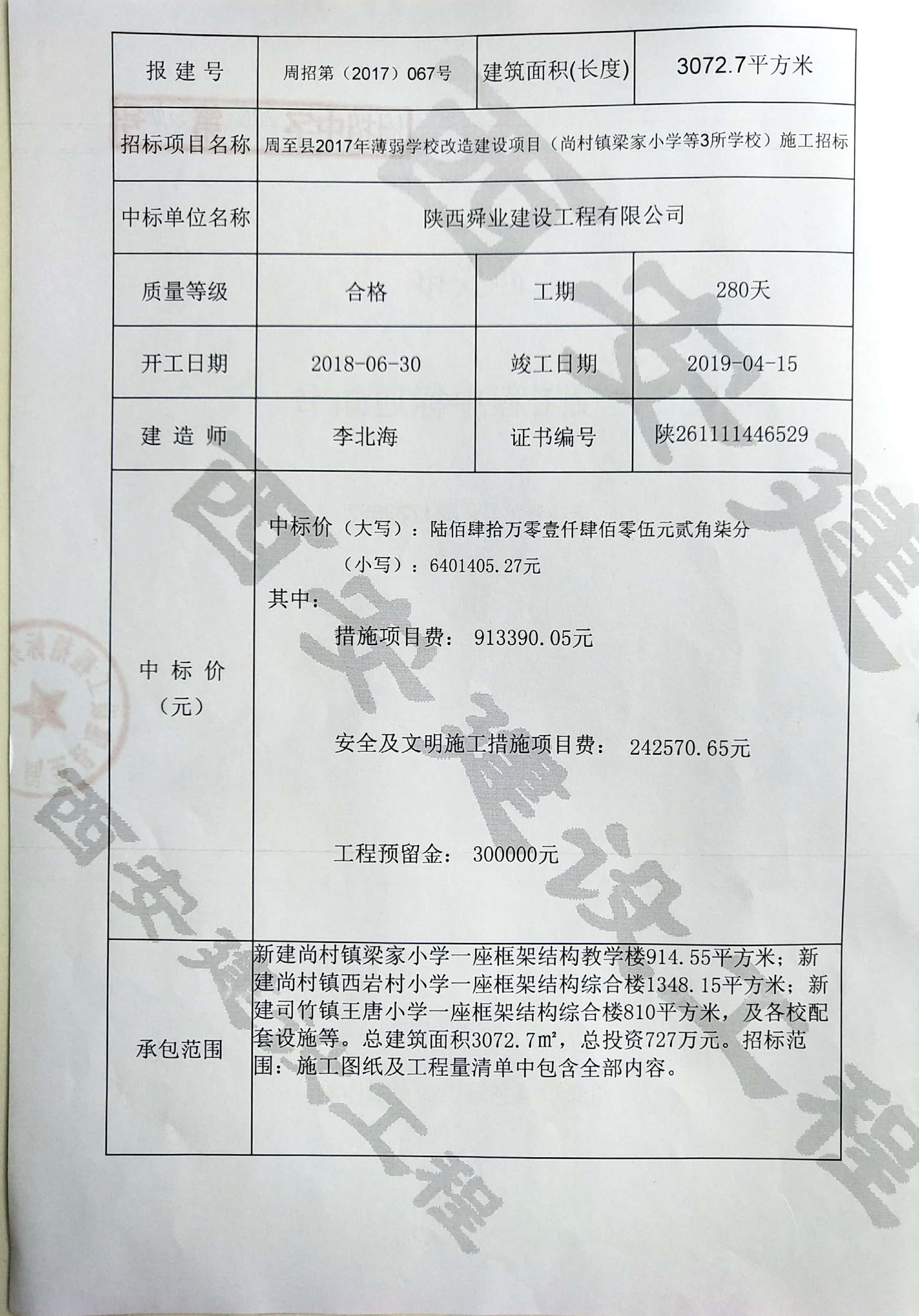 周至縣2017年薄弱學(xué)校改造建設(shè)項(xiàng)目(尚村鎮(zhèn)梁家小學(xué)等3所學(xué)校)施工及監(jiān)理招標(biāo)