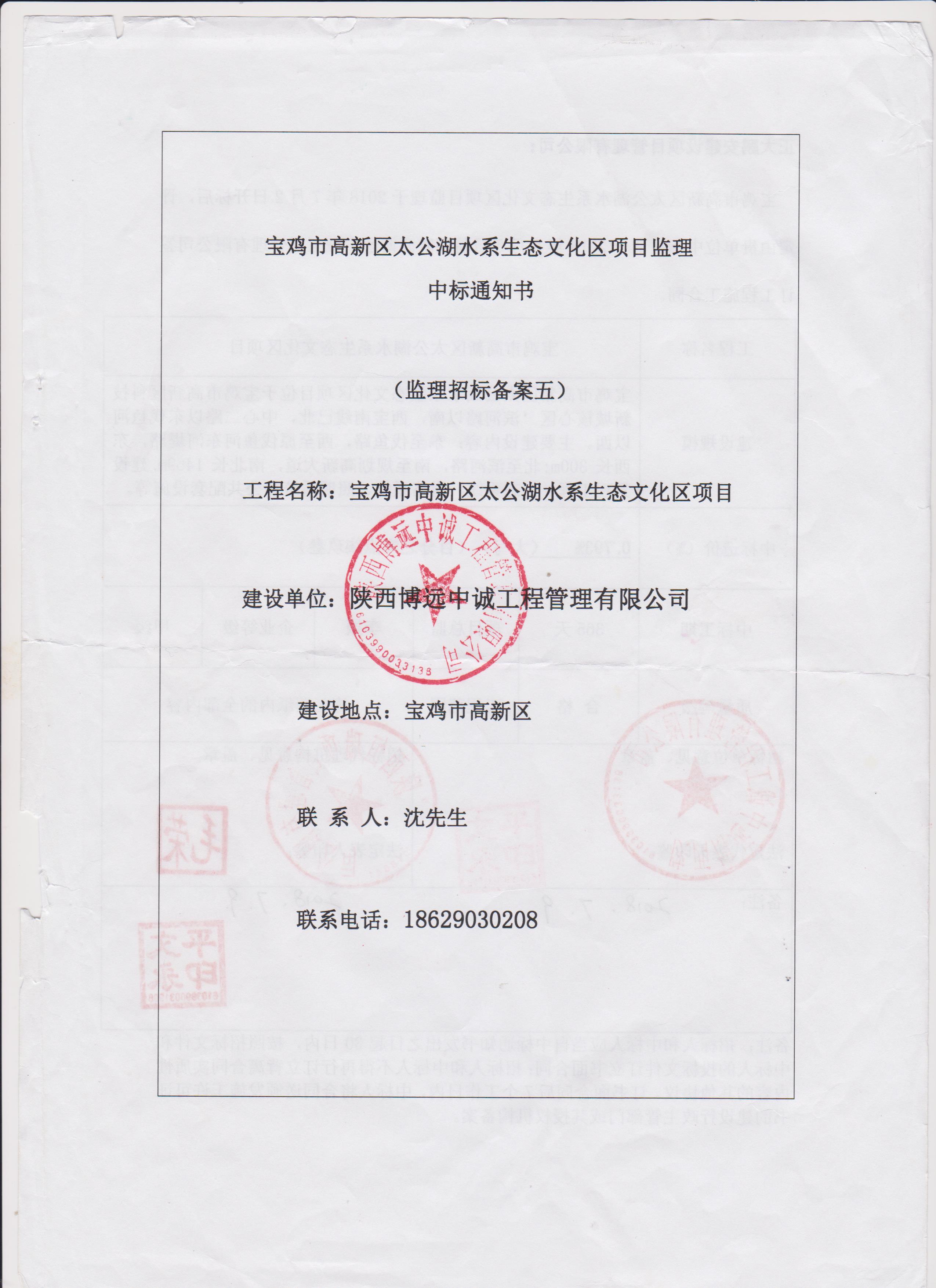 正大鵬安中標(biāo)寶雞市高新區(qū)太公湖水系生態(tài)文化區(qū)項(xiàng)目監(jiān)理