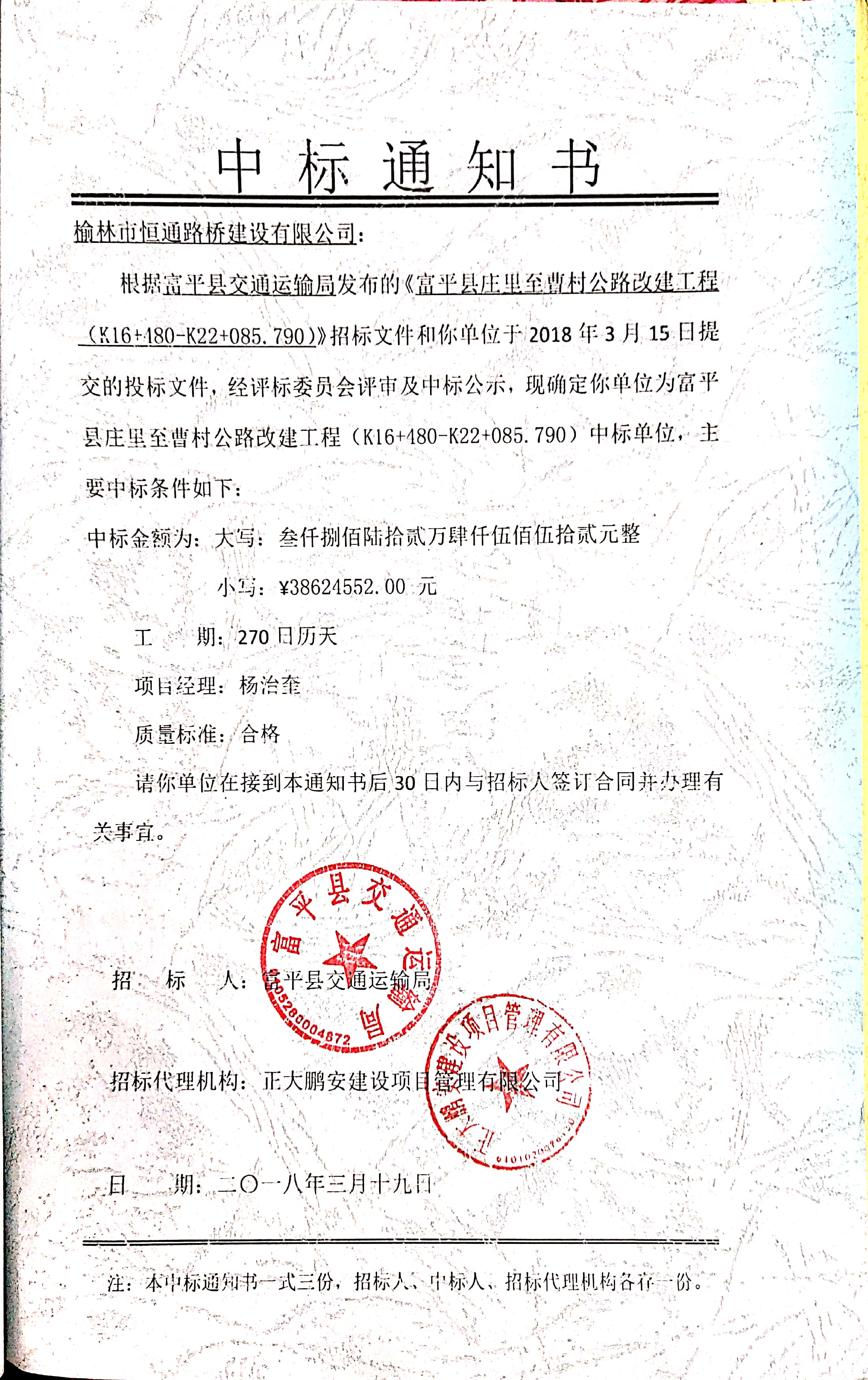 項(xiàng)目名稱:富平縣莊里至曹村公路改建工程(k16+480-k22+085.790)