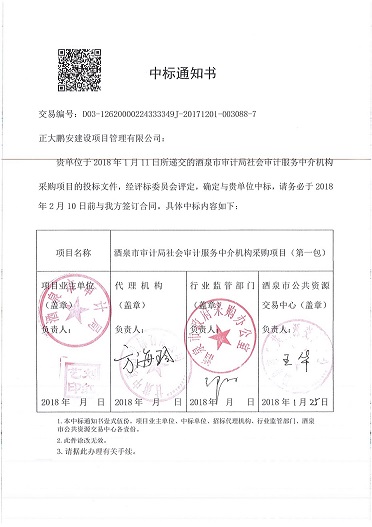 正大鵬安中標(biāo)酒泉市審計局社會審計服務(wù)中介機(jī)構(gòu)采購項目