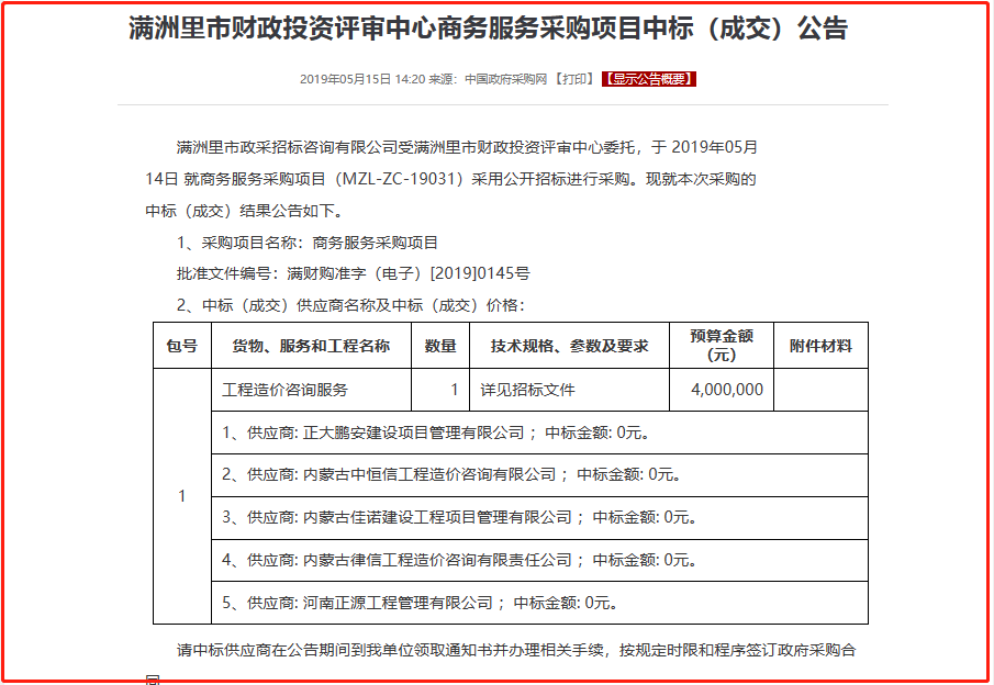 正大鵬安中標(biāo)滿洲里市財政投資評審中心商務(wù)(工程咨詢管理)服務(wù)入圍采購項(xiàng)目