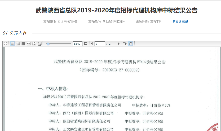 近日,武警陜西總隊(duì)對“武警陜西省總隊(duì)2019-2020年度招標(biāo)代理機(jī)構(gòu)庫項(xiàng)目”進(jìn)行公開招標(biāo),經(jīng)評標(biāo)委員會(huì)綜合評審,招標(biāo)人確認(rèn),正大鵬安建設(shè)項(xiàng)目管理有限公司已入圍。