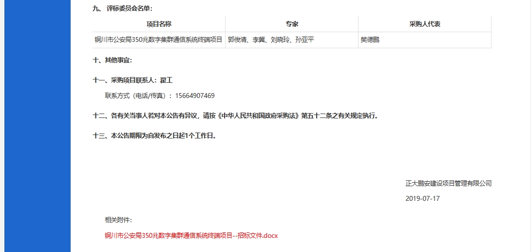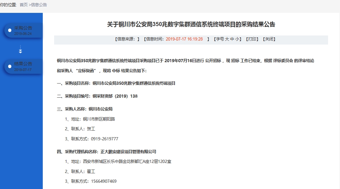 銅川市公安局350兆數(shù)字集群通信系統(tǒng)終端項(xiàng)目