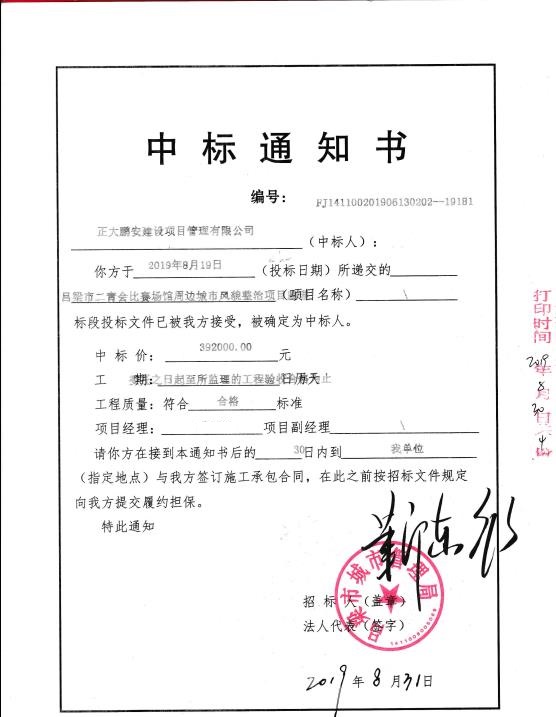 正大鵬安中標呂梁市二青會比賽場館周邊城市風貌整治工程監(jiān)理項目
