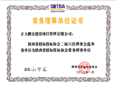 年初,經(jīng)陜西省招標(biāo)投標(biāo)協(xié)會(huì)二屆六次理事會(huì)選舉,正大鵬安公司當(dāng)選為陜西省招標(biāo)投標(biāo)協(xié)會(huì)常務(wù)理事單位。