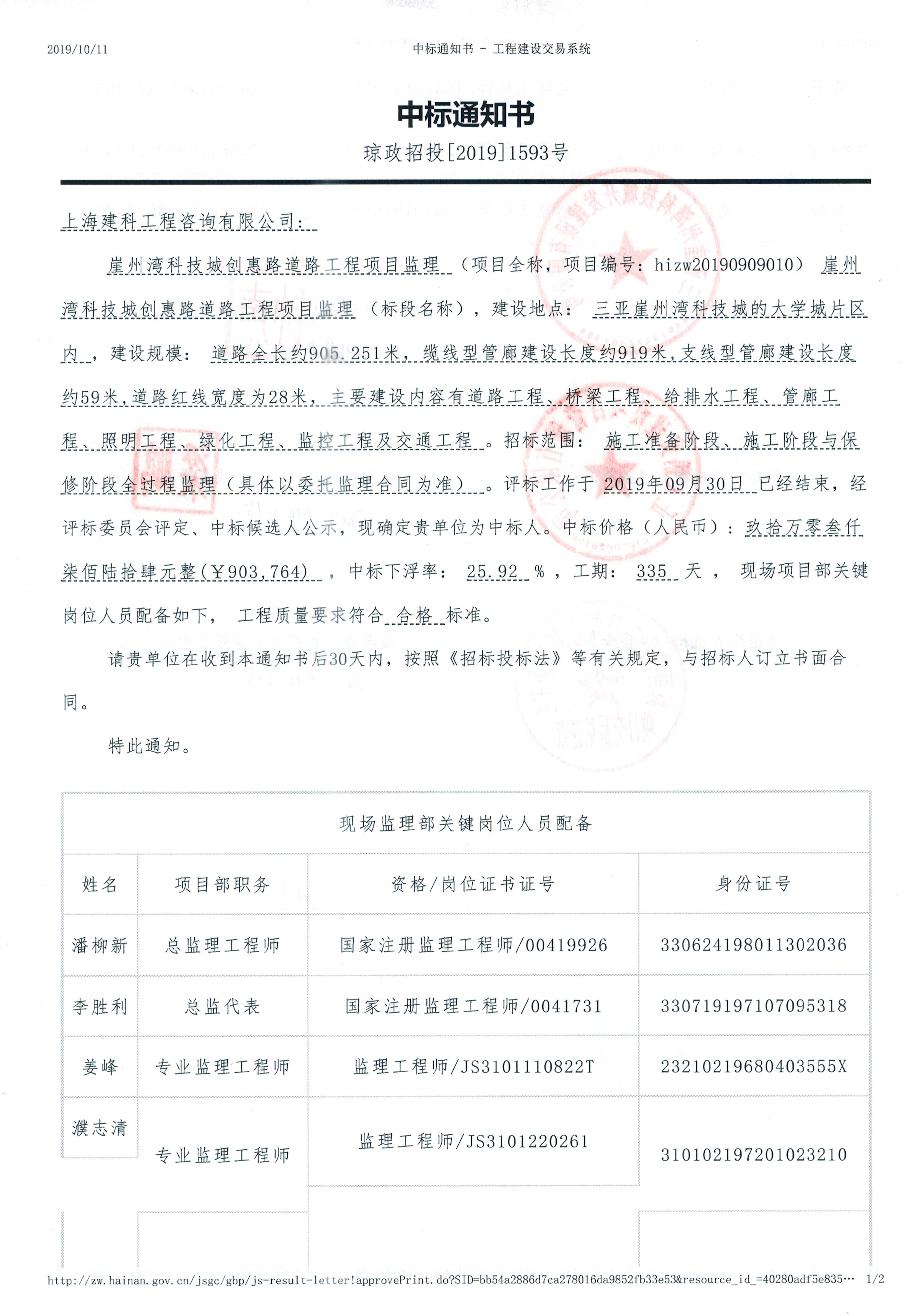 崖州灣科技城創(chuàng)惠路道路工程項目EPC、監(jiān)理