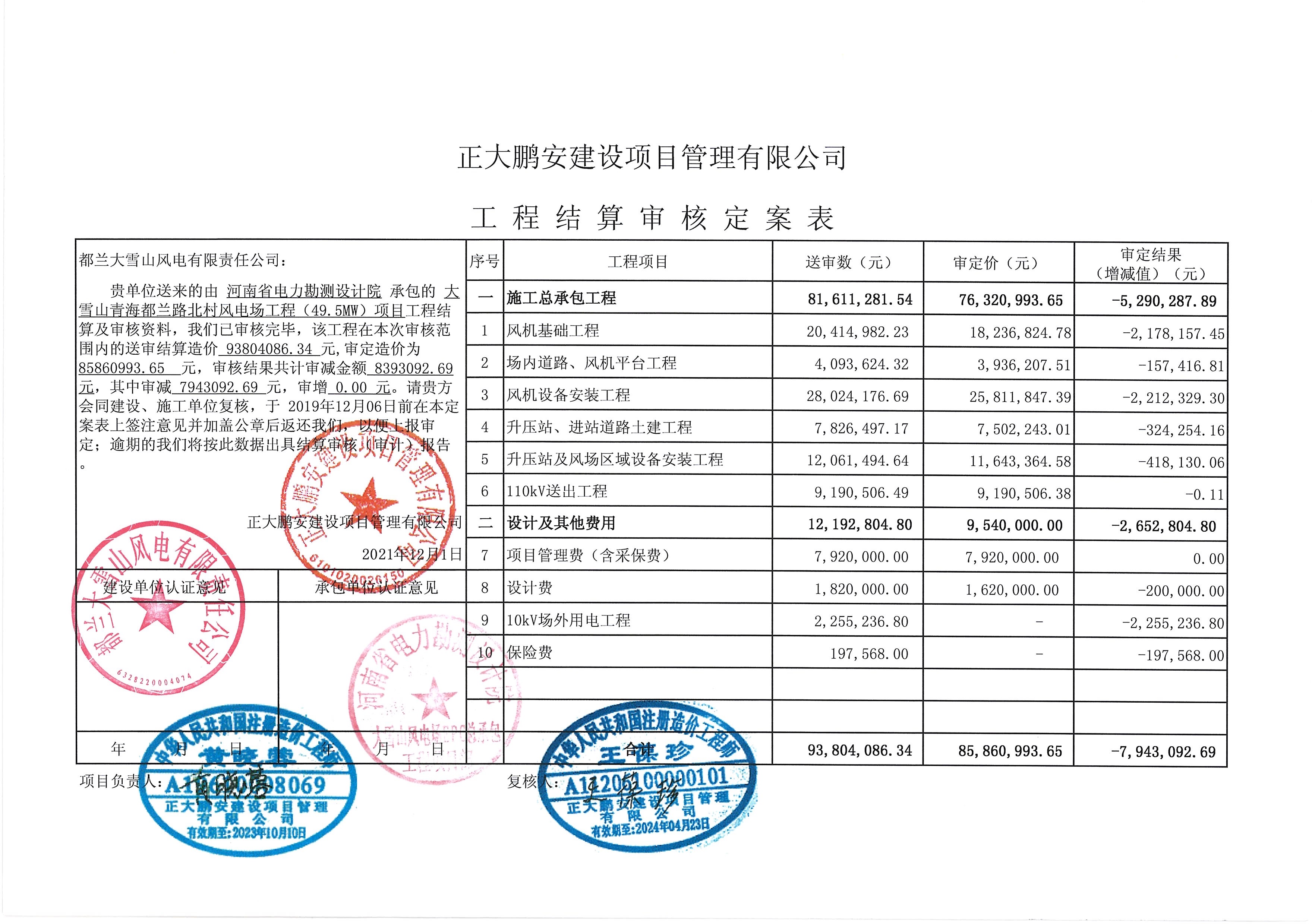 工程規(guī)模:33*1500KW風(fēng)力發(fā)電機(jī)組,建設(shè)地點(diǎn):青海都蘭縣境內(nèi),海拔高度為2845~2950m,報(bào)送建設(shè)項(xiàng)目竣工結(jié)算審核。