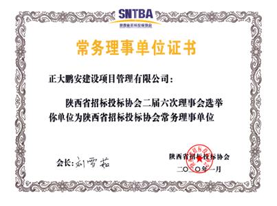 正大鵬安建設(shè)項(xiàng)目管理有限公司被評(píng)為“陜西省招標(biāo)投標(biāo)協(xié)會(huì)理事(會(huì)員)單位”