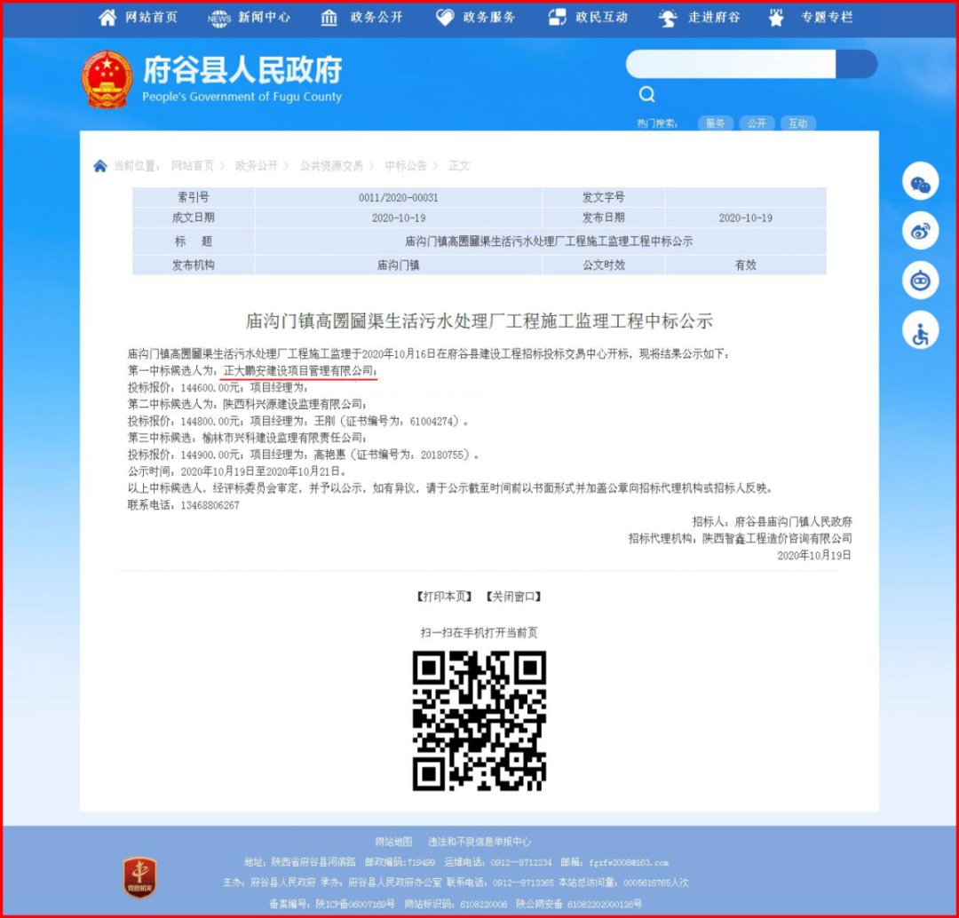 近期,我公司參與了廟溝門(mén)鎮(zhèn)高圐圙渠生活污水處理廠工程施工監(jiān)理工程項(xiàng)目的投標(biāo),經(jīng)評(píng)標(biāo)委員會(huì)綜合評(píng)審,招標(biāo)人確認(rèn),正大鵬安建設(shè)項(xiàng)目管理有限公司被確認(rèn)為中標(biāo)單位。