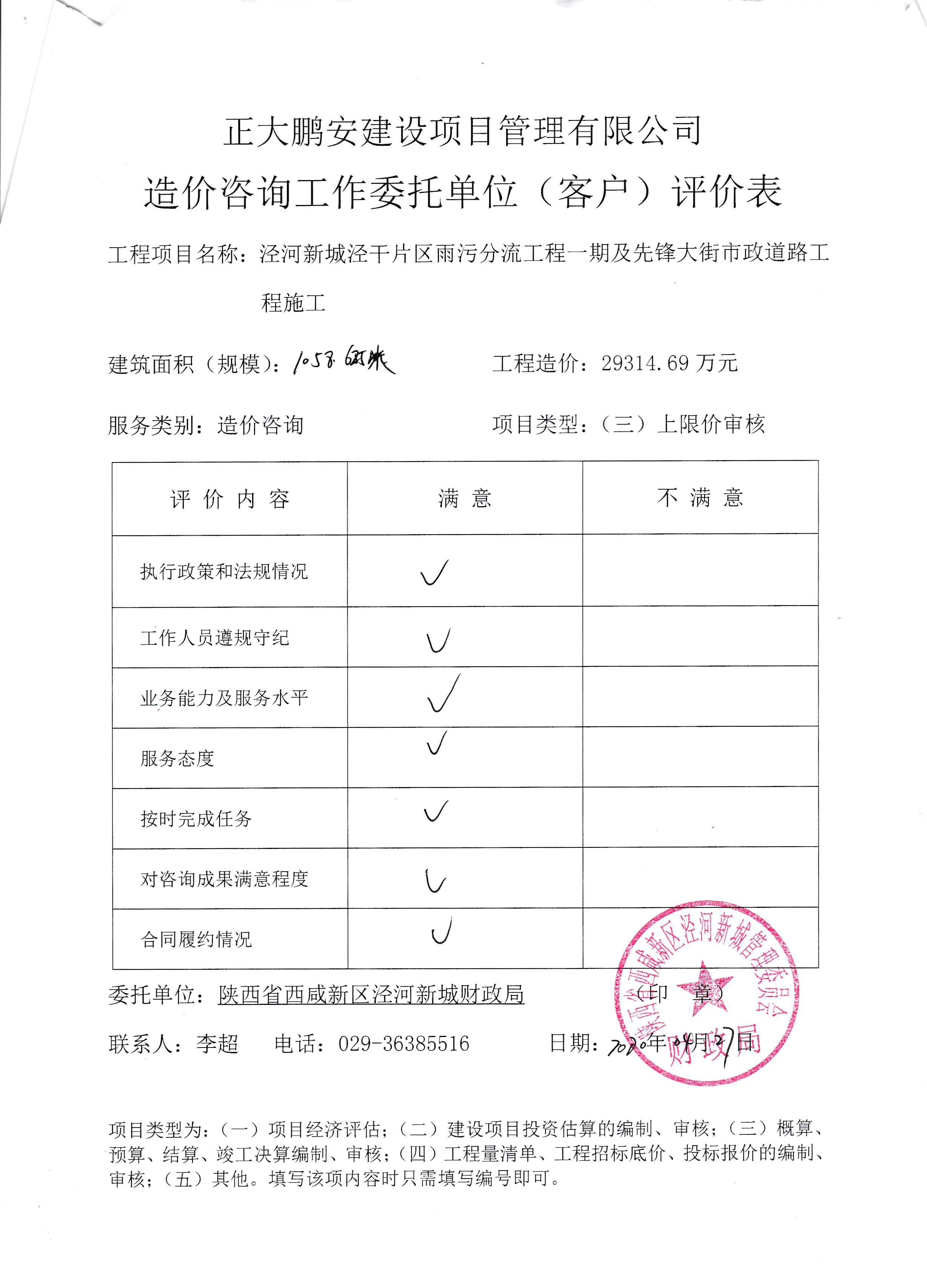 工程名稱:涇河新城涇干片區(qū)雨污分流及先鋒大街市政道路工程施工限價審核