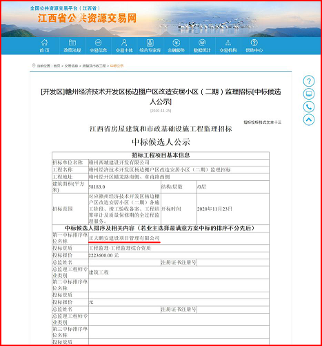 正大鵬安中標(biāo)江西贛州經(jīng)濟(jì)技術(shù)開(kāi)發(fā)區(qū)楊邊棚戶區(qū)改造安居小區(qū)(二期)監(jiān)理