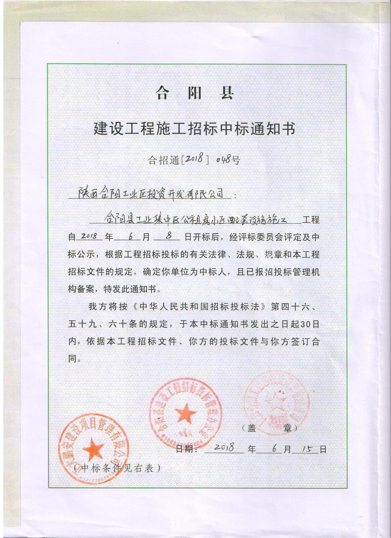 合陽縣工業(yè)集中區(qū)公租房配套設(shè)施建設(shè)項目施工招標(biāo)