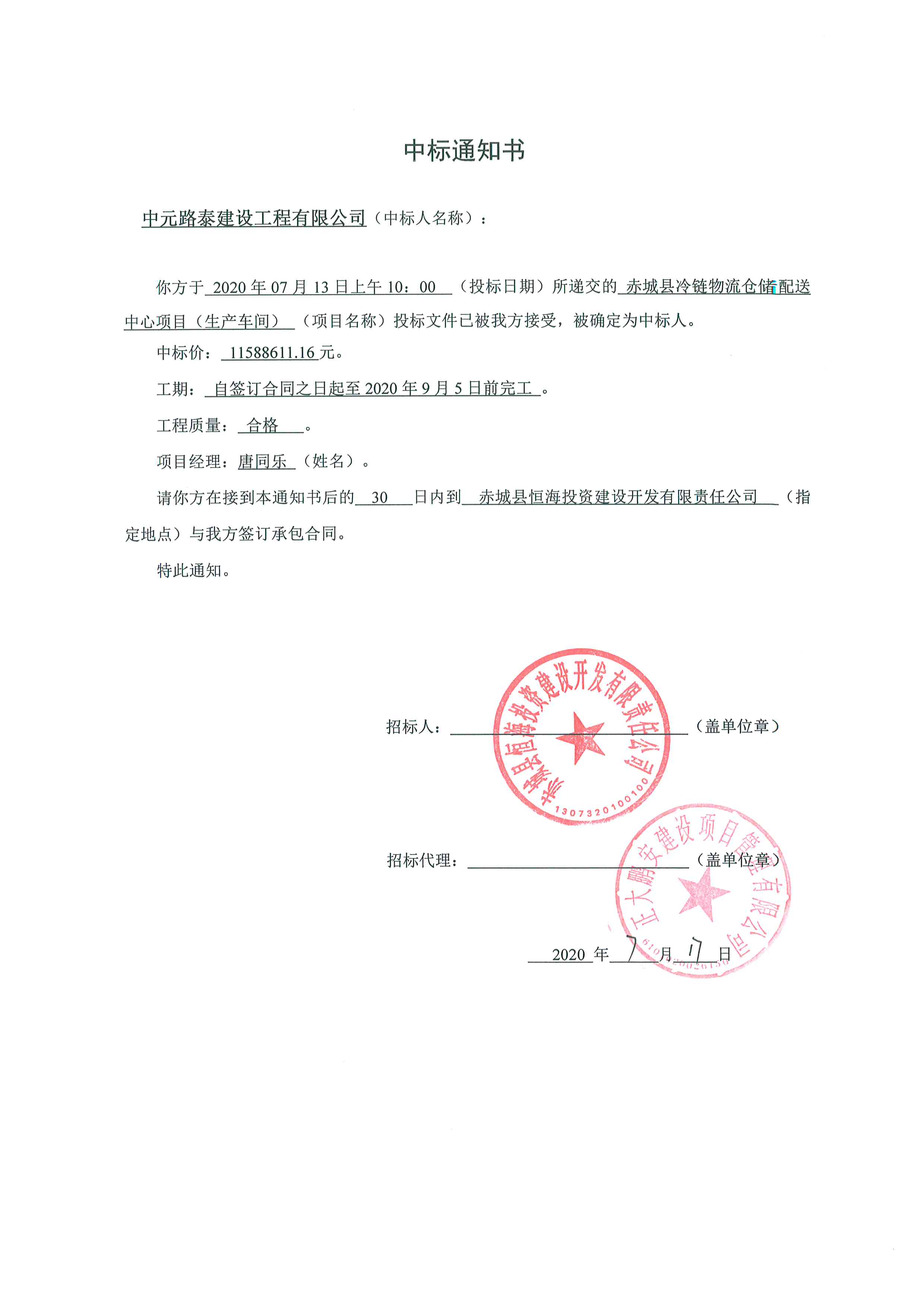 項目名稱:赤城縣冷鏈物流倉儲配送中心項目