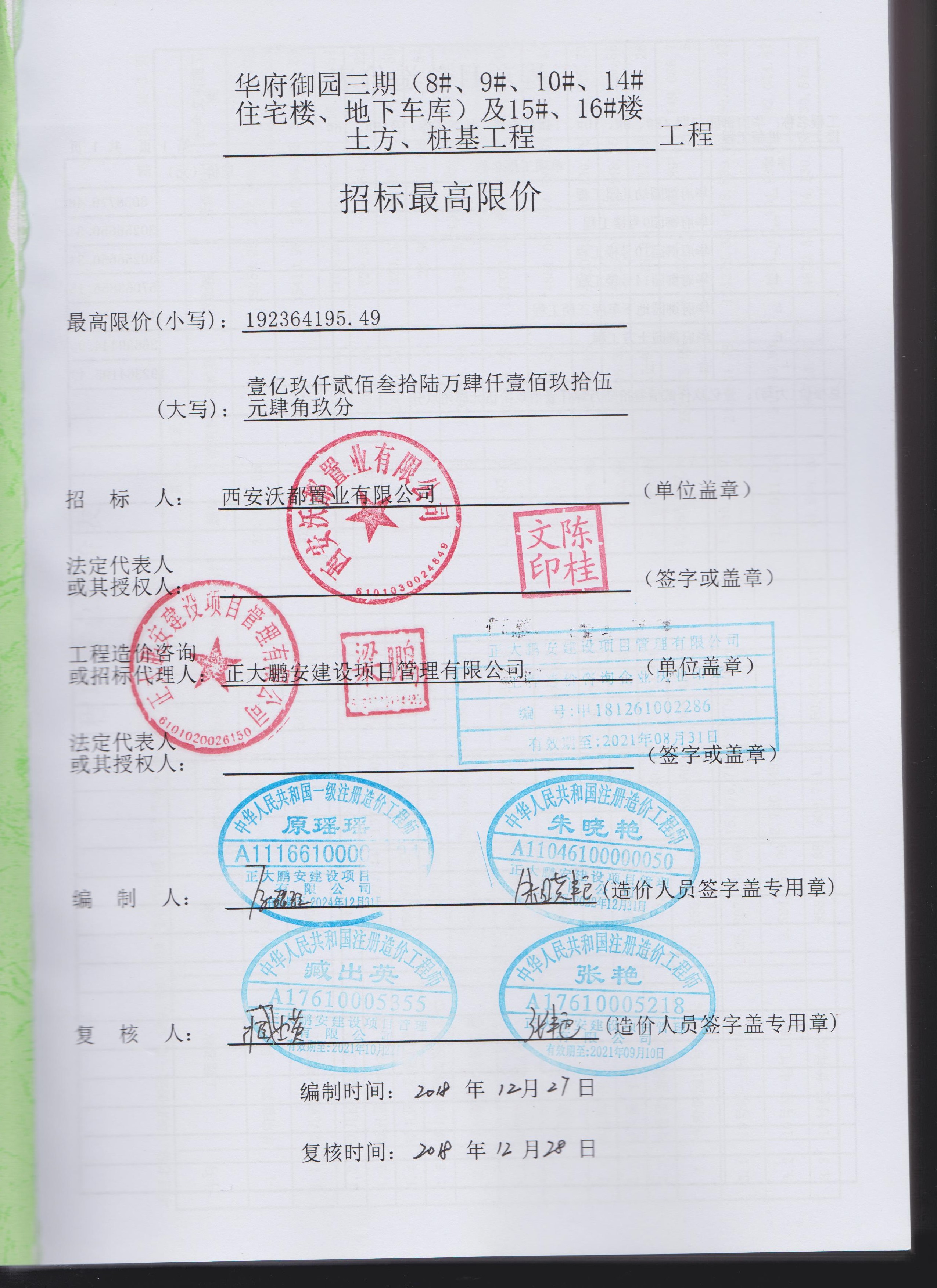 華府御園三期工程—招標(biāo)最高限價(jià)