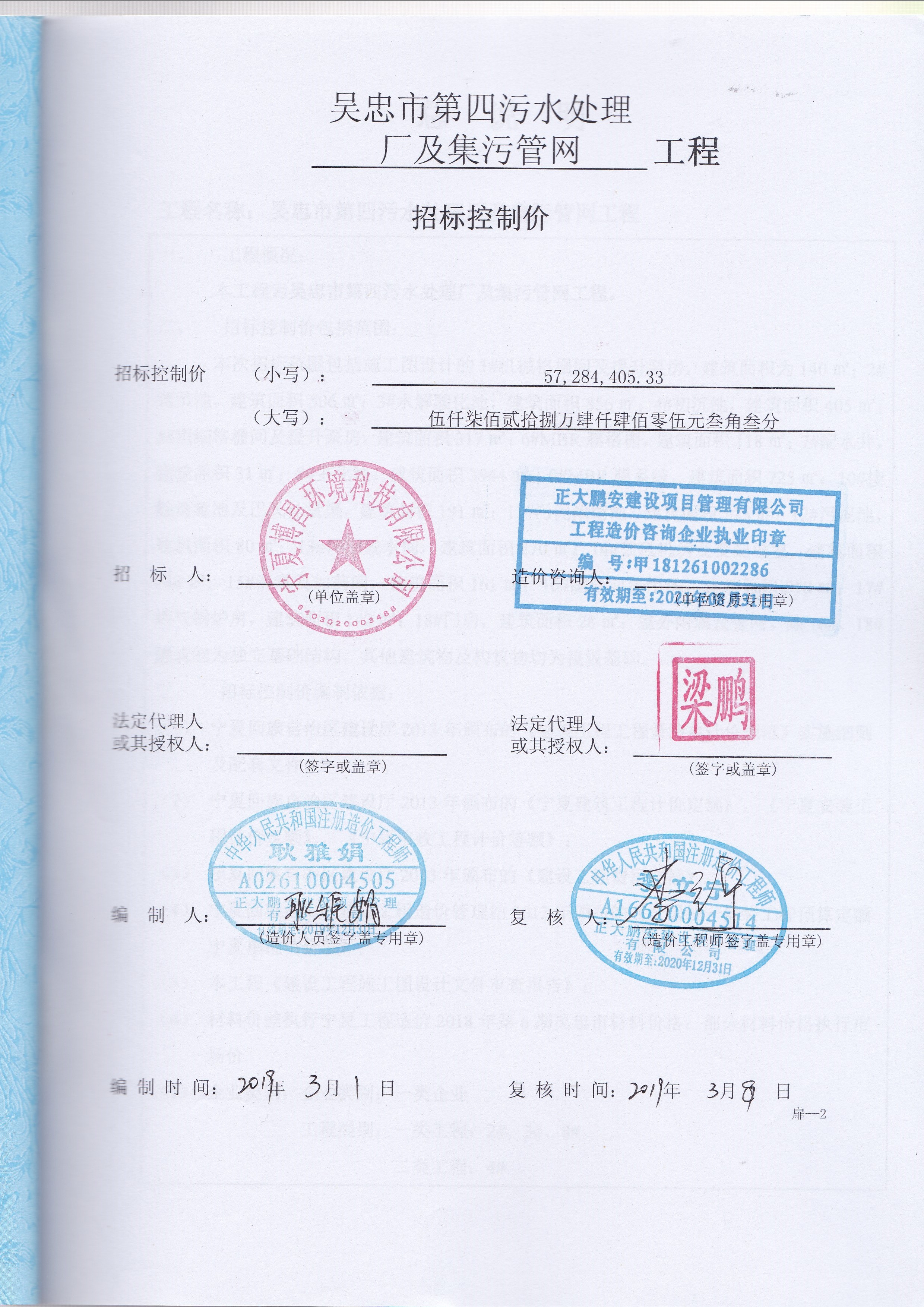 工程名稱:吳忠市第四污水處理廠及集污管網(wǎng)工程