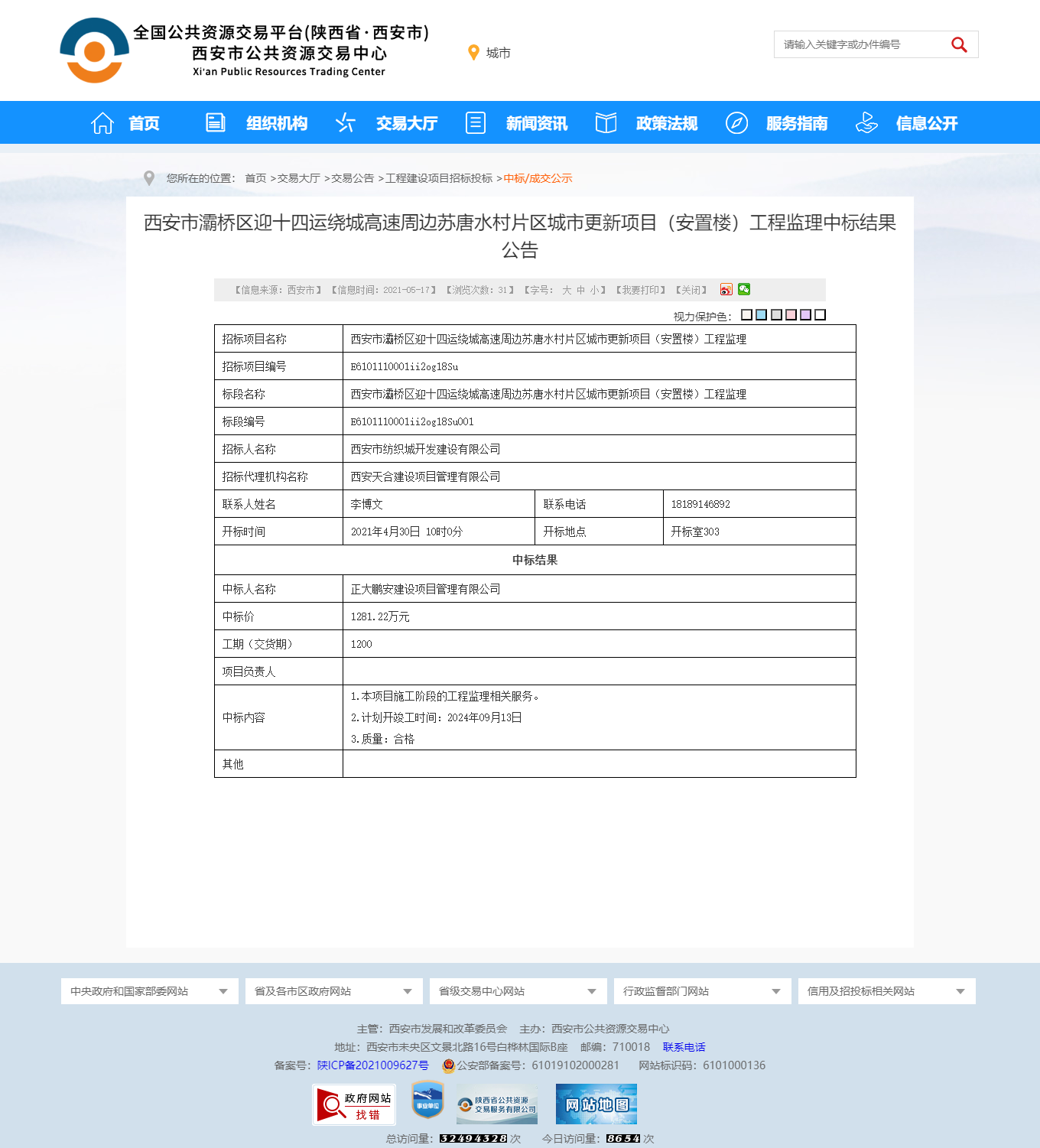 2021年4月,經評標委員會評定,招標人確認,正大鵬安建設項目管理有限公司中標西安市灞橋區(qū)迎十四運繞城高速周邊蘇唐水村片區(qū)城市更新項目(安置樓)工程監(jiān)理項目。