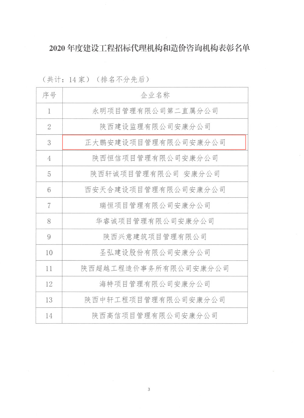 熱烈祝賀正大鵬安安康分公司在2020年度全市建設(shè)工程招標(biāo)代理和造價(jià)咨詢機(jī)構(gòu)誠(chéng)信執(zhí)業(yè)行為考核中獲得表彰