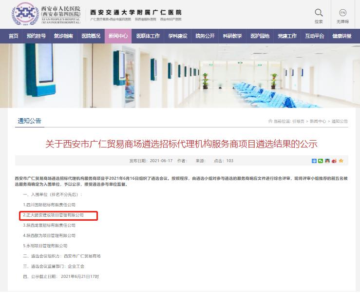 正大鵬安入圍西安市廣仁貿(mào)易商場(chǎng)遴選招標(biāo)代理機(jī)構(gòu)服務(wù)商項(xiàng)目