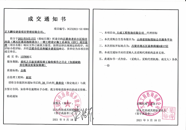 正大鵬安中標(biāo)呂梁市老舊小區(qū)綜合改造(離石區(qū)蓮花池街道辦)一期工程設(shè)計(jì)施工總承包(EPC)項(xiàng)目監(jiān)理