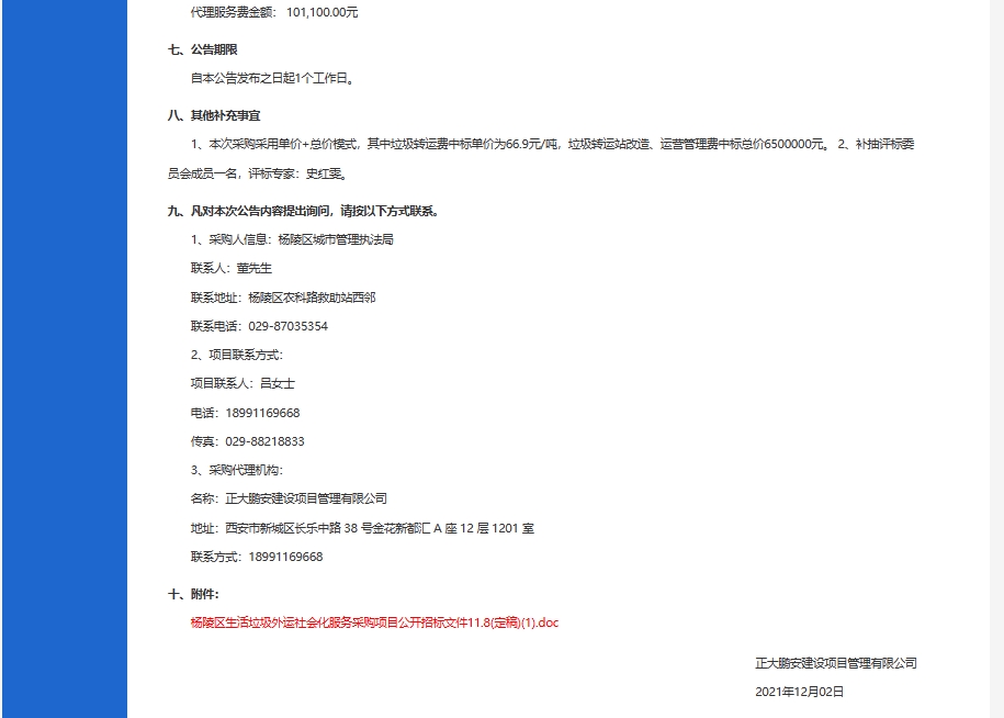 項目概況 : 主要對負責楊凌示范區(qū)全區(qū)生活垃圾轉(zhuǎn)運工作及對服務(wù)范圍內(nèi)垃圾轉(zhuǎn)運站進行提升改造、維護、管理、保潔、設(shè)備維保等工作,預(yù)算總額2265 萬元。