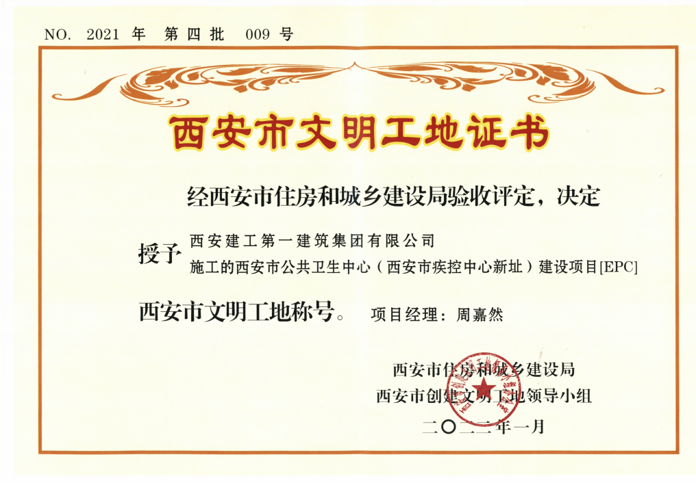 正大鵬安監(jiān)理的西安市公共衛(wèi)生中心(西安疾控中心新址)建設(shè)項目【EPC】榮獲“西安市文明工地稱號”