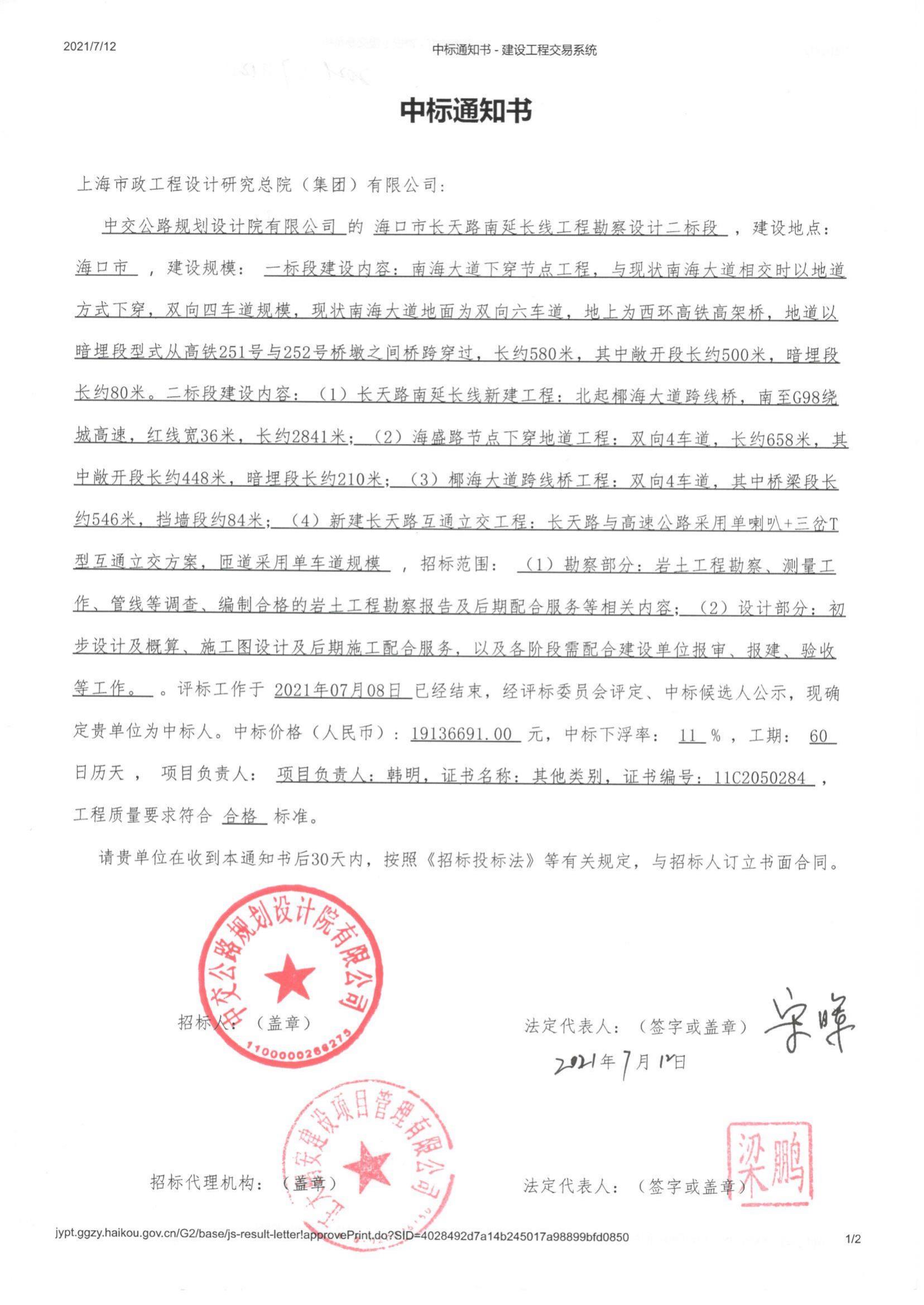 項(xiàng)目名稱(chēng):??谑虚L(zhǎng)天路南延長(zhǎng)線工程勘察設(shè)計(jì)