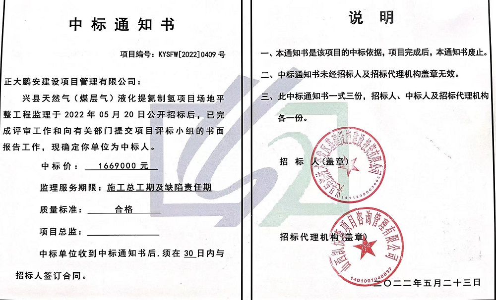 正大鵬安中標(biāo)興縣天然氣(煤層氣)液化提氦制氫項(xiàng)目場地平整工程監(jiān)理