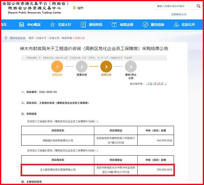 正大鵬安中標(biāo)神木市財政局關(guān)于工程造價咨詢(高新區(qū)危化企業(yè)員工保障房N2標(biāo)段)