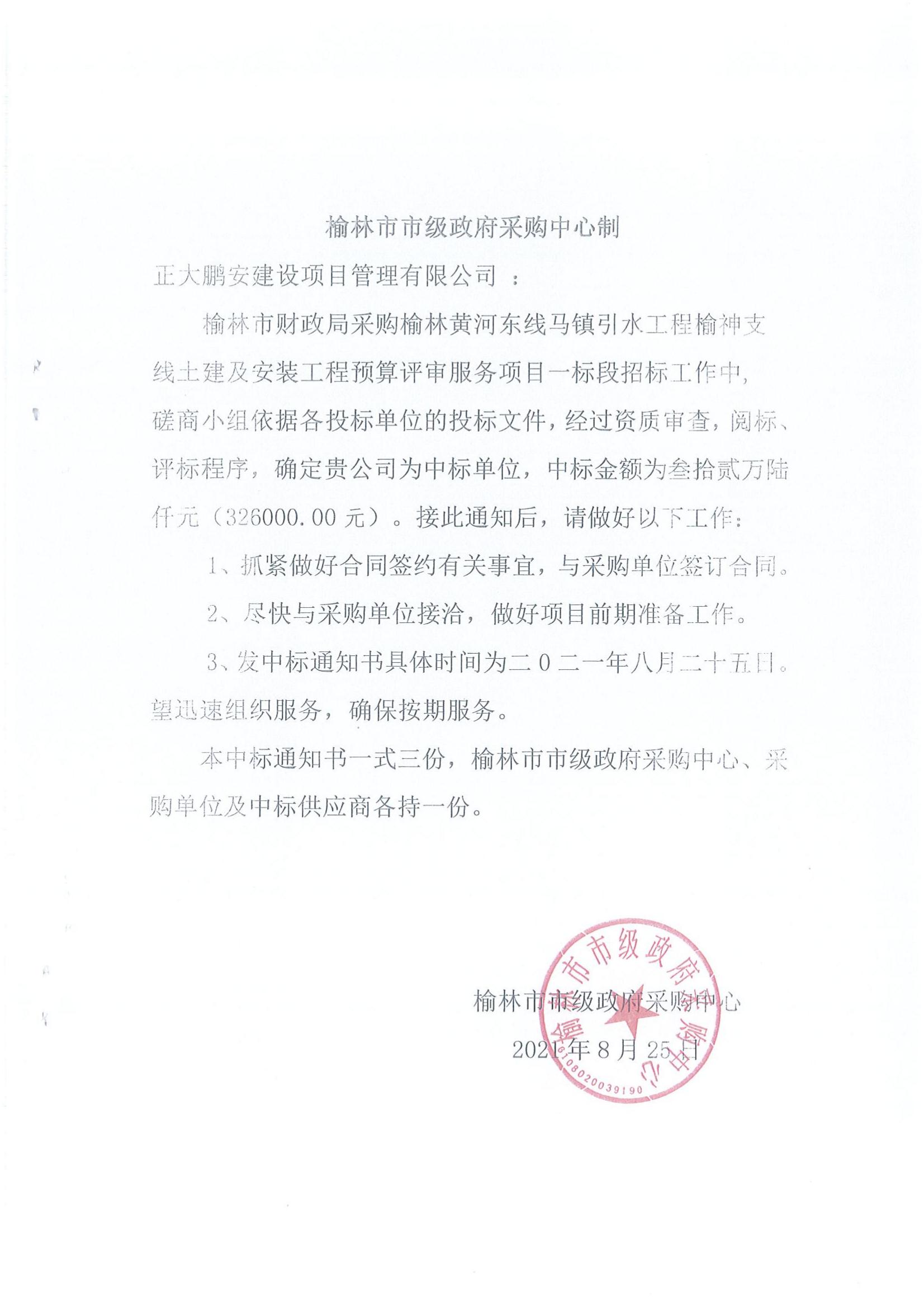工程名稱:榆林黃河東線馬鎮(zhèn)引水工程榆神支線土建及安裝工程一標段預