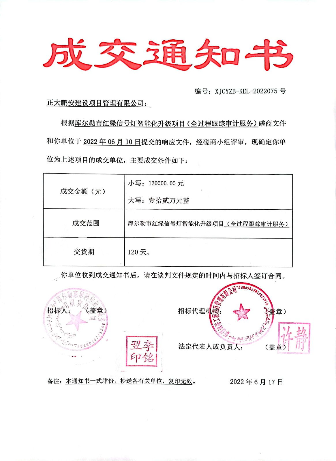 正大鵬安中標(biāo)庫(kù)爾勒市紅綠信號(hào)燈智能升級(jí)項(xiàng)目(全過(guò)程跟蹤審計(jì)服務(wù))