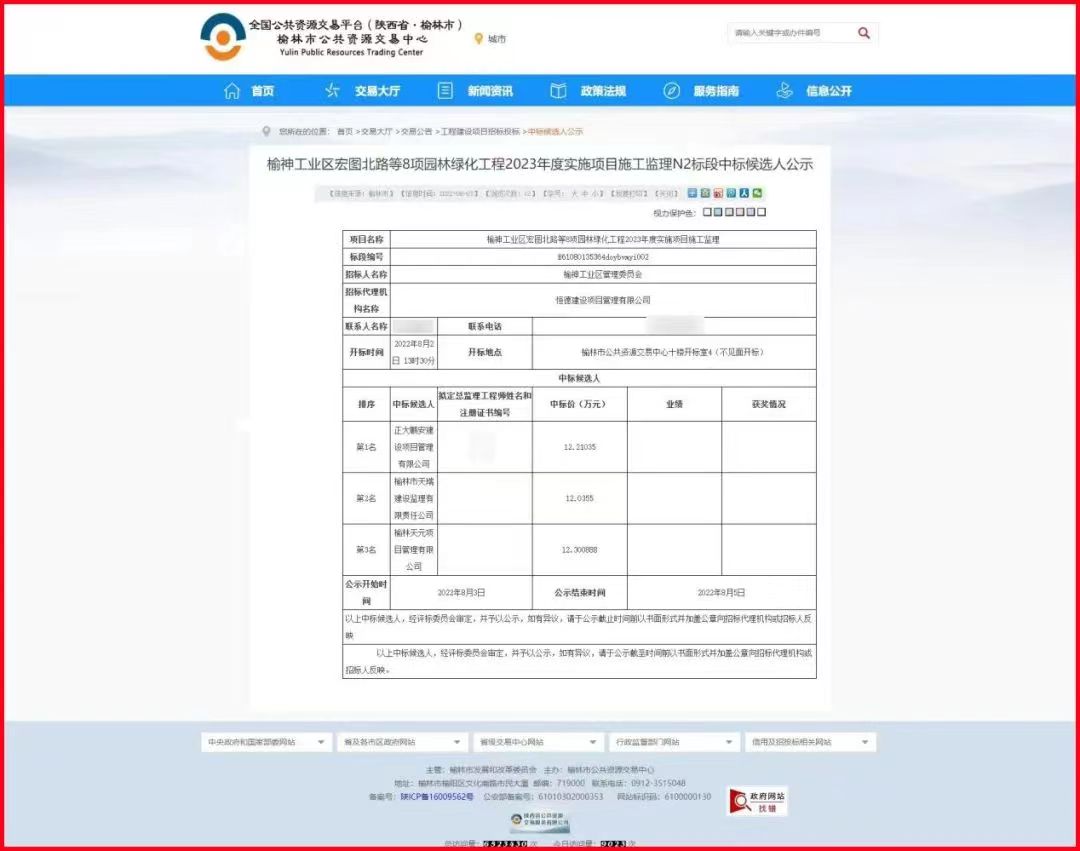 正大鵬安中標(biāo)榆神工業(yè)區(qū)宏圖北路等8項(xiàng)園林綠化工程2023年度項(xiàng)目施工監(jiān)理N2標(biāo)段