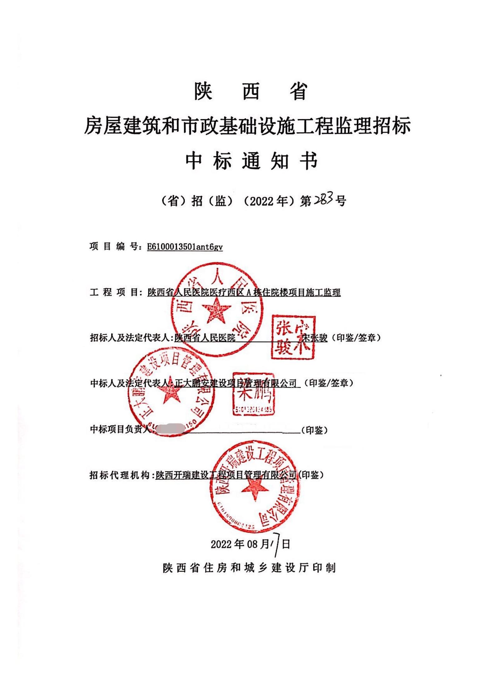 近日,陜西省人民醫(yī)院對“陜西省人民醫(yī)院醫(yī)療西區(qū)A棟住院樓項目施工監(jiān)理”項目進行公開招標經(jīng)評標委員會綜合評審,招標人確認,正大鵬安公司中標。
