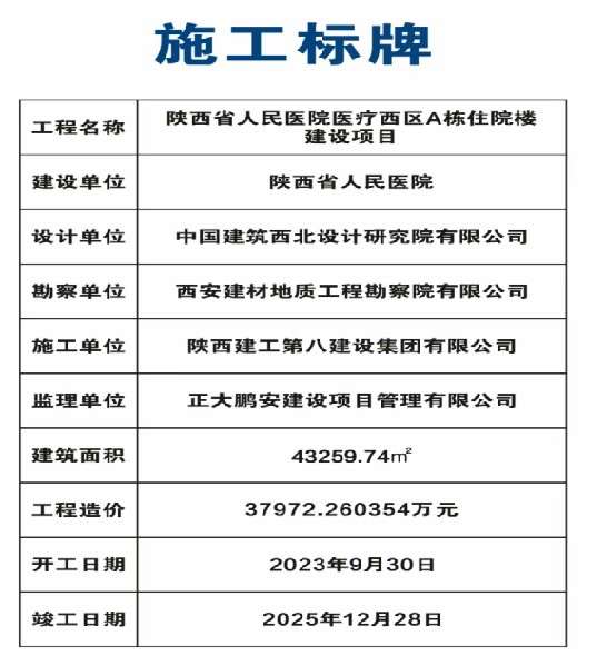 陜西省人民醫(yī)院醫(yī)療西區(qū)A棟住院樓項(xiàng)目監(jiān)理