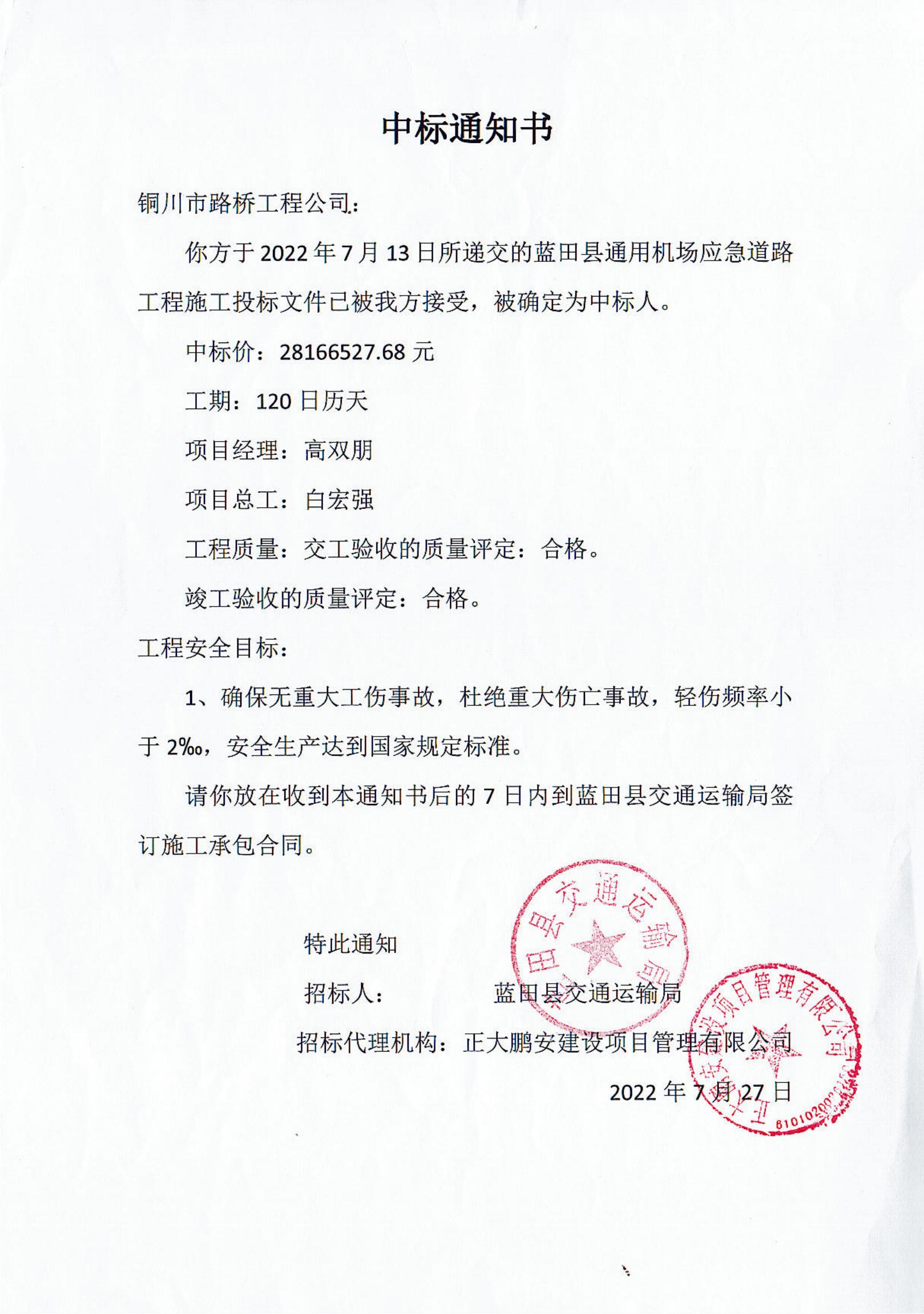 項(xiàng)目名稱:藍(lán)田通用機(jī)場應(yīng)急道路工程