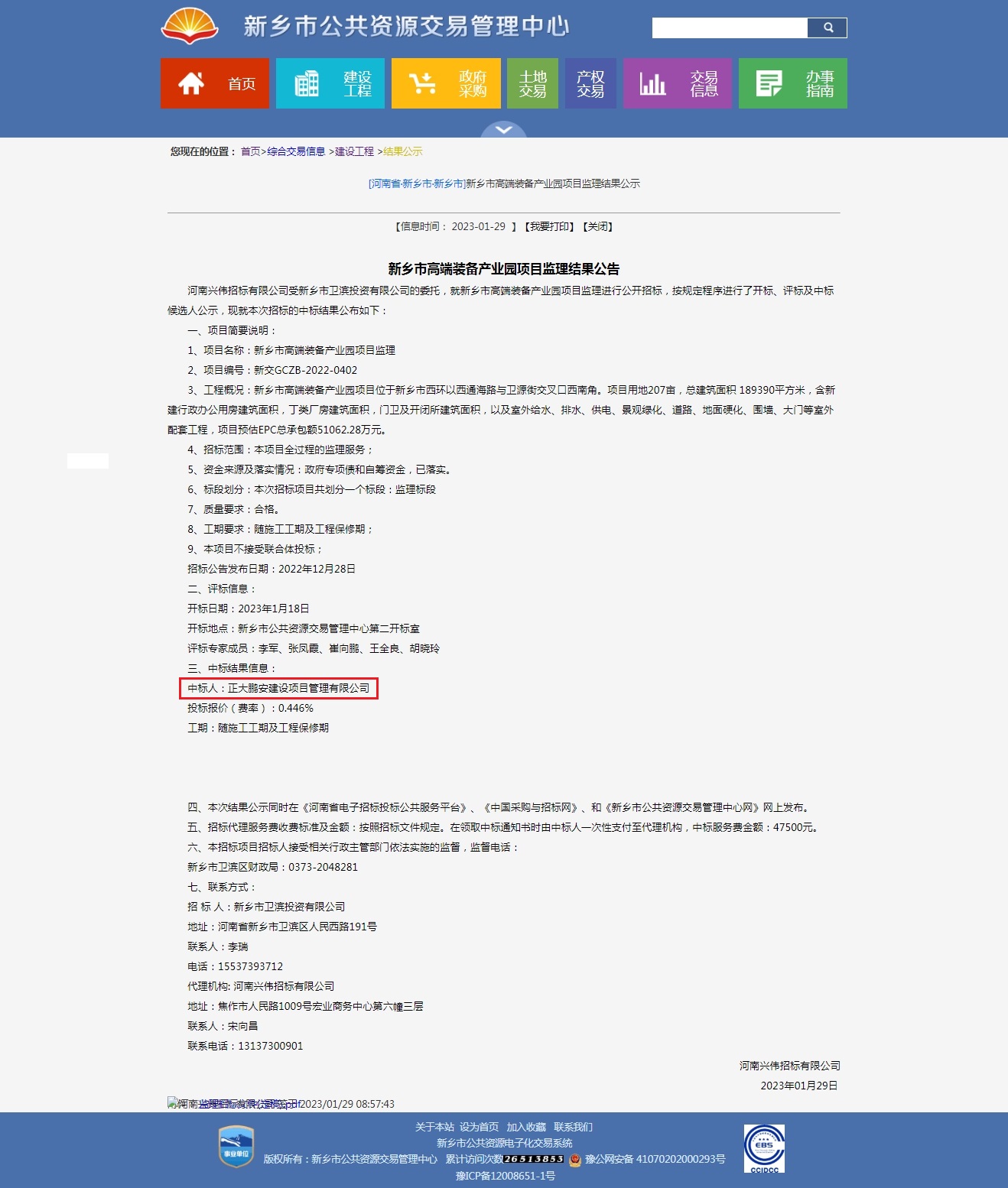 正大鵬安中標(biāo)新鄉(xiāng)市高端裝備產(chǎn)業(yè)園項(xiàng)目監(jiān)理