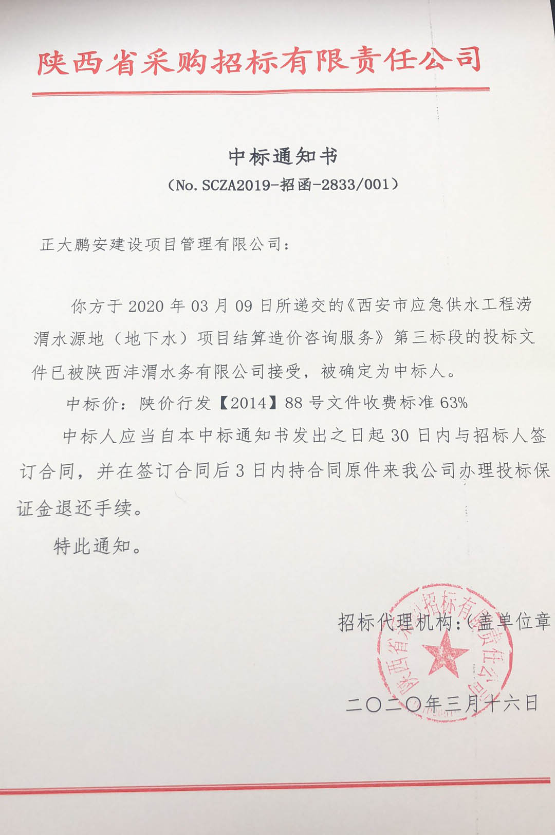 項(xiàng)目名稱:西安市應(yīng)急供水工程澇渭水源地(地下水)項(xiàng)目結(jié)算造價(jià)咨詢服務(wù)(第三標(biāo)段)