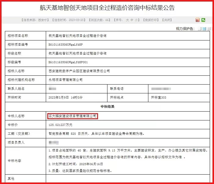 2023年3月,經(jīng)評(píng)標(biāo)委員會(huì)評(píng)定,招標(biāo)人確認(rèn),正大鵬安建設(shè)項(xiàng)目管理有限公司中標(biāo)西安建航數(shù)字產(chǎn)業(yè)園區(qū)建設(shè)有限責(zé)任公司的“航天基地智創(chuàng)天地項(xiàng)目全過程造價(jià)咨詢”項(xiàng)目。