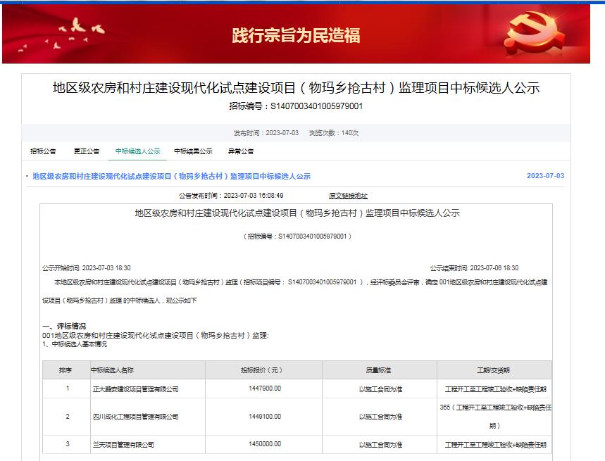 2023年7月,經(jīng)評(píng)標(biāo)委員會(huì)評(píng)定,招標(biāo)人確認(rèn),正大鵬安建設(shè)項(xiàng)目管理有限公司中標(biāo)改則縣住房和城鄉(xiāng)建設(shè)局的“地區(qū)級(jí)農(nóng)房和村莊建設(shè)現(xiàn)代化試點(diǎn)建設(shè)項(xiàng)目(物瑪搶古村)監(jiān)理”項(xiàng)目。